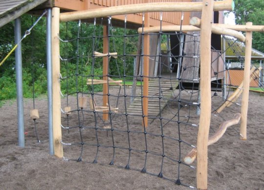 Yderligere anvender vi robinie træ i henhold til europæisk standard for legepladser. Robinie er en meget stærk træsort med lang holdbarhed.