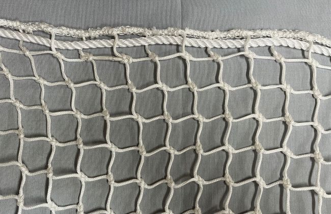 Hvid reposnet i 40 mm masker, kantsyet med 4 mm x-flet